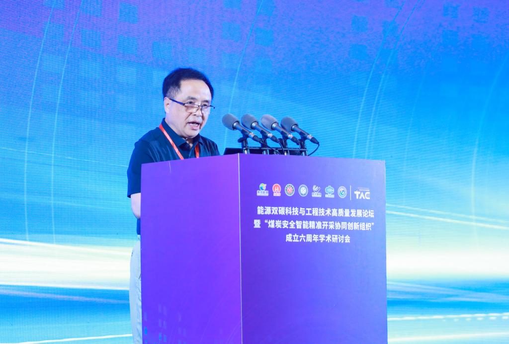 刘峰致辞。他代表中国煤炭学会、中国煤炭工业协会及本次学术论坛的组委会,对论坛的顺利举行表示衷心祝贺。他指出,六年来,“煤炭安全智能精准开采协同创新组织”搭建了能源科技学术交流合作的高端智库平台,通过将物联网、大数据、云计算、人工智能等先进技术与煤炭开采相融合,积极探索煤炭智能感知与控制技术的创新应用,取得的一系列重大研究成果为煤炭的安全智能绿色开采提供了有力支撑,推动了“煤炭安全智能精准开采”从科学构想发展成为理论和技术现实,为提升煤炭安全、高效、低碳的开采水平贡献力量。他希望大家以“协同创新组织”学术研讨会为契机,更加紧密携手合作,不断探索能源双碳科技领域的新理论、新技术、新成果、新经验,为推动我国能源科技进步贡献智慧和力量。