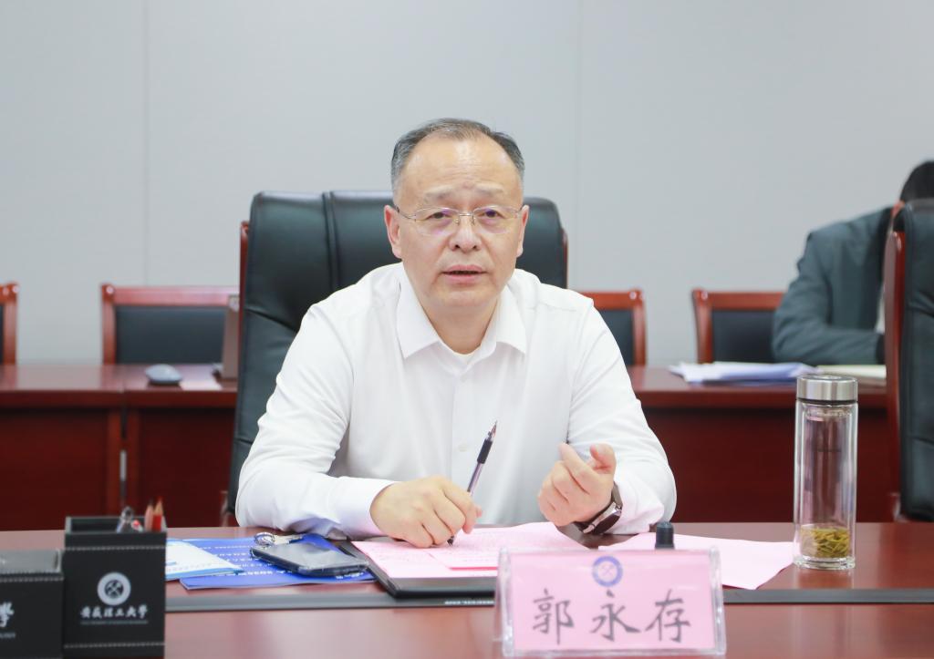 郭永存对何淳宽一行来校交流签约表示热烈欢迎。他指出,一直以来学校与宣城市保持了良好的互动交流,学校是首批宣城校地合作联盟成员单位,在宣城市建立优质生源基地5个,近五年招收宣城籍本、硕、博学生近1200人,每年有近百名毕业生到宣城就业创业。校地签署战略合作协议,是双方深化合作的全新起点,是一体推进教育、科技、人才高质量发展的有力行动,是贯通“政产学研用”全链条的创新之举,也是学校推深做实“四个融入”战略,融入长三角一体化、服务地方经济社会高质量发展的生动实践。他强调,要强化政策、人才、项目三个层面的有效联动,支撑驱动战略合作走深走实、落地见效。学校将充分发挥学科专业和人才优势,立足宣城加快建设长三角中心区现代化城市目标,聚焦产业发展需求,在高素质人才联合培养、校企联合科技攻关、科技人才交流等方面加强实质性合作,产出创新性成果。同时,双方要深入推动大学生实习实训实践基地、科教产融合平台建设,助推更多毕业生去宣城就业创业、安家落户,实现市校双向奔赴、彼此赋能、共创共赢、携手向前。