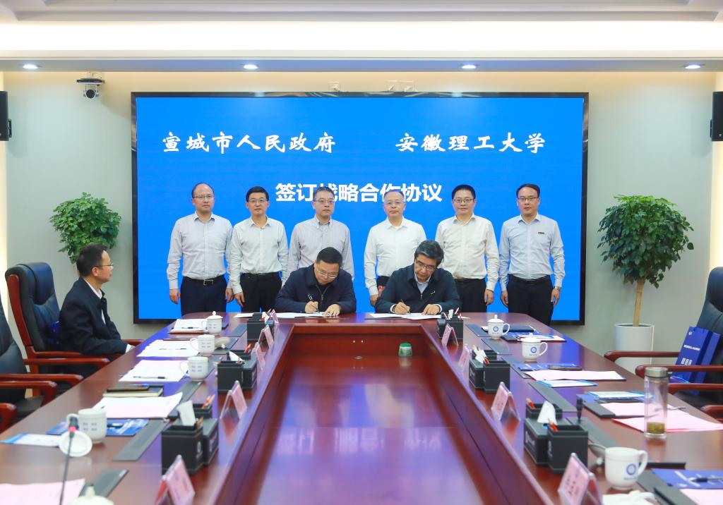 何淳宽对学校深厚的历史底蕴、鲜明的办学特色、强劲的发展动能表示由衷钦佩。他介绍了宣城近年来聚力打造动能强劲的产业体系、构建活力迸发的创新平台、营造近悦远来的服务生态,迭代升级“宣十条”、“敬亭英才”等政策,吸引更多人才成为宣城城市发展的最佳“合伙人”。他指出,安徽理工大学人才荟萃、智力密集、创新活跃,宣城是历史文化名城,正聚力打造创新发展高地,双方开展战略合作可谓是“名城牵手名校”,彼此相互赋能,发展空间广阔。他期待双方构建常态化交流沟通机制,以人才为牵引,以项目为依托,以创新为导向,重点在大学生就业创业基地建设、人才联合培养、项目“揭榜挂帅”、企业科技副总聘用、干部人才挂职交流等方面开展务实合作,产出实际成果,努力打造相互成就的合作典范。
