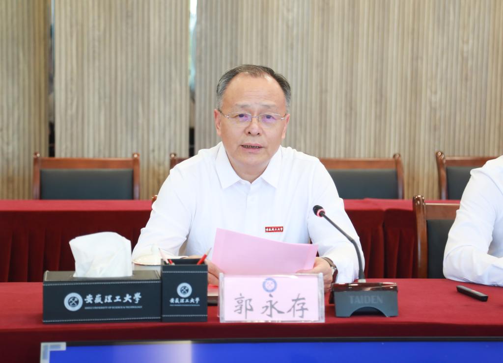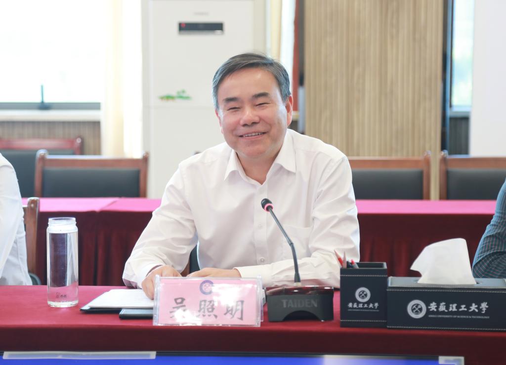 郭永存对吴照明一行的到来表示热烈欢迎。他指出,安徽理工大学和铜陵学院作为省属兄弟高校,一直以来两校保持着良好的互动交流,建立了深厚的合作关系。当前,面对教育强省建设的迫切需求,双方都承担着推进高质量发展的重大任务,双方在学科专业、人才培养、成果共育、服务发展等方面有着良好的互补性,具备良好的合作基础,期待双方充分发挥各自优势,找准契合点,全面加强交流合作,推动形成一批高质量合作成果,推进合作向更大范围、更宽领域、更高层次发展,为打造“三地一区”、建设“七个强省”携手奋进贡献力量。