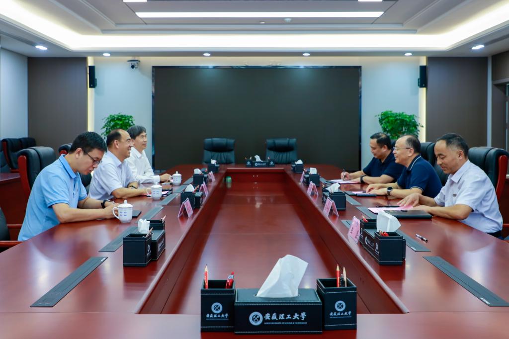9月15日下午,校党委书记郭永存在职业安全健康创新中心213会议室,会见了山东科技大学党委副书记、校长曾庆田一行,双方围绕深化务实合作座谈交流。山东科技大学党委常委、副校长薛庆忠参加会见,校党委常委、副校长张平松陪同会见。