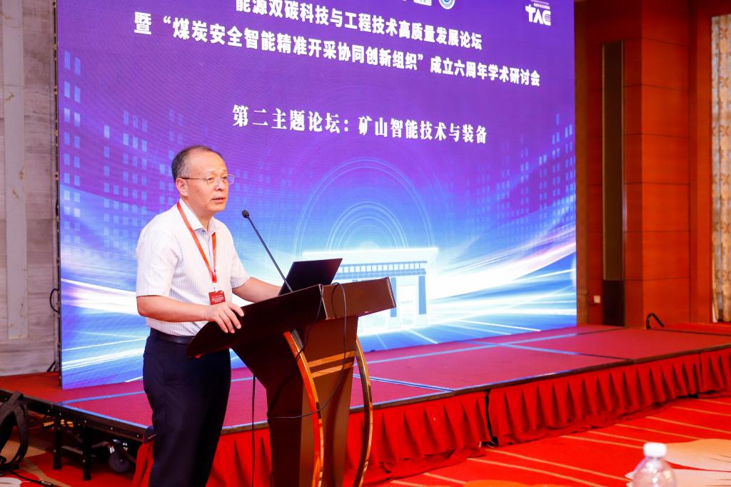 王国法院士致辞。他指出,能源双碳科技与工程的高质量发展离不开矿山智能技术与装备。期待与会专家能够紧密围绕国家和行业需求,构建产学研用深度融合新模式,以智能化矿山技术与装备助力国家实现“双碳”目标,为国家能源双碳科技发展贡献更大的力量。